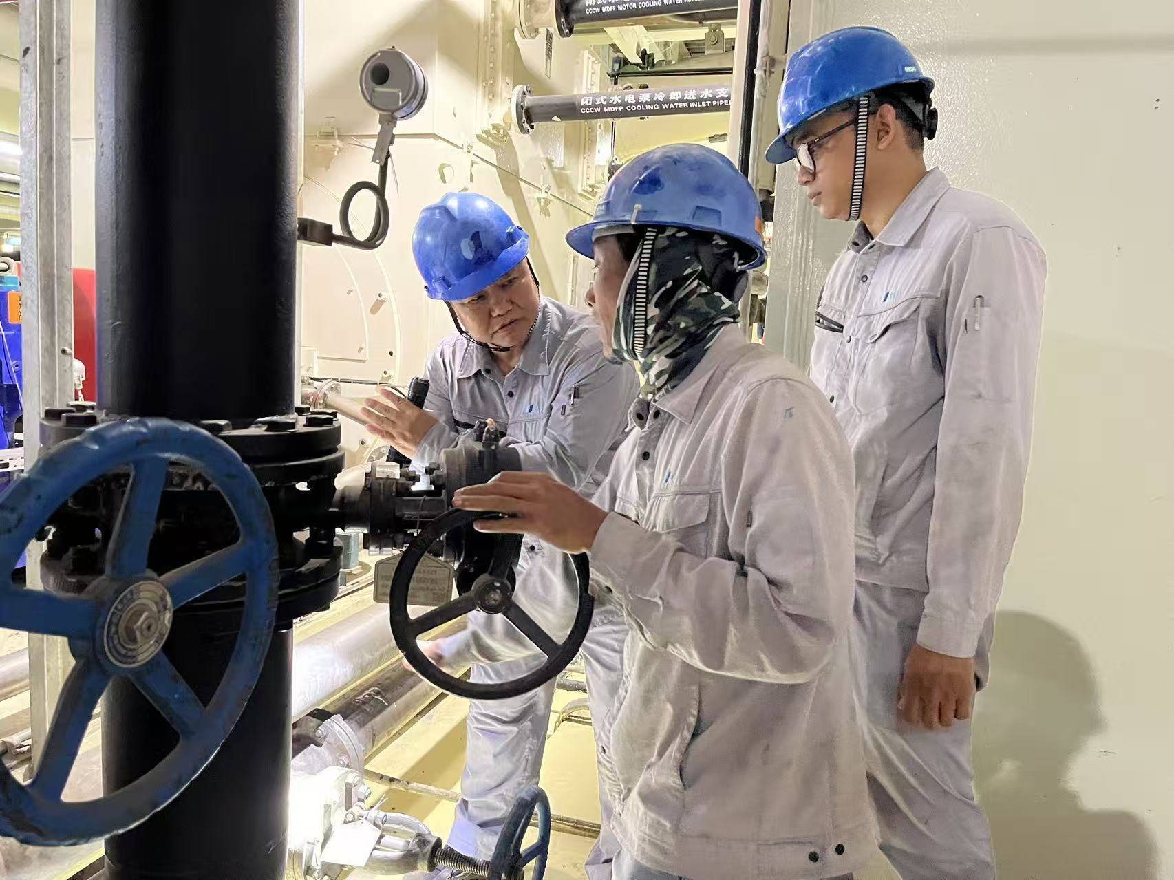 2025年7月2日,在印度尼西亚南苏门答腊省麻拉埃宁县,华电(印尼)玻雅发电公司设备维护部机务一班师傅谈志东(左一)现场指导印尼徒弟度一(左二)和法赫里检查电泵冷油器系统。新华社发(罗江华摄)中秋晚会上,玻雅公司印尼方董事米娅主动邀请陈兴宇“组团”参加“两人三足”趣味活动,两人的默契配合赢得中印尼员工热烈鼓掌与欢呼。